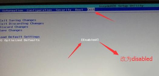 2、轉(zhuǎn)到Exit,把OS Optimized Defaults設(shè)置為Disabled或Other OS,如下圖所示;