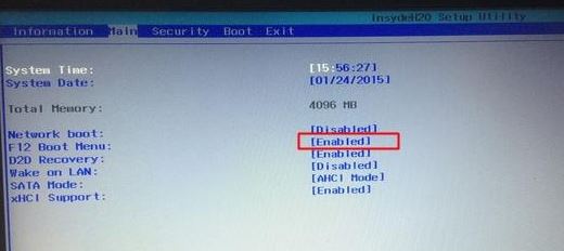 4、轉到Main,選擇F12 Boot Menu回車,設置為Enabled,按F10選擇Yes回車保存修改,如下圖所示;