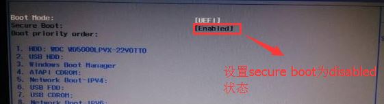 返回BOOT選項,將Secure BOOT默認enabled為disabled,關閉安全啟動