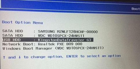 5、插入制作好的U盤啟動盤,重啟按F12或FN+F12調(diào)出啟動管理對話框,選擇USB HDD識別到U盤啟動進入PE,回車;