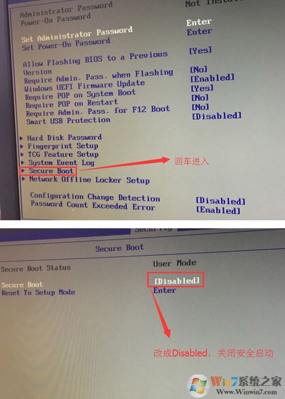 1、開機一直按F2或(FN+F2)進入BIOS,按→方向鍵切換到Security,選擇Secure Boot回車設(shè)置成Disabled;