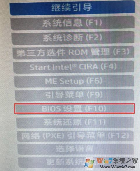 1、開機(jī)一直按按ESC,出現(xiàn)以下界面后,再按F10進(jìn)入BIOS,如圖: