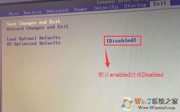 2、轉(zhuǎn)到Exit,把OS Optimized Defaults設(shè)置為Disabled;