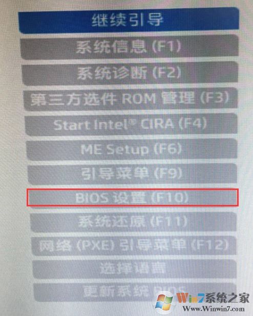 1、開機(jī)一直按按ESC,出現(xiàn)以下界面后,再按F10進(jìn)入BIOS,如下圖所示;