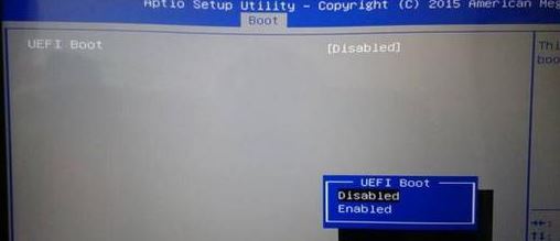3、選擇UEFI Boot回車設(shè)置成Disabled,如果有CSM,設(shè)置為Enabled,然后按F4保存設(shè)置;