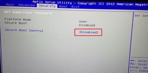 1、重啟筆記本按F2進入BIOS設(shè)置,在Security下把Secure Boot Control設(shè)置為Disabled,如下圖所示;