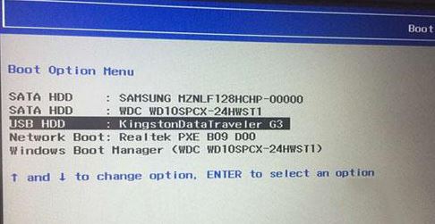 4、插入制作好的U盤啟動盤,重啟按F12或FN+F12調(diào)出啟動管理對話框,選擇USB HDD識別到U盤啟動進入PE,回車;