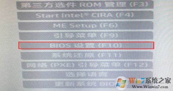 1、開機(jī)一直按按ESC,出現(xiàn)以下界面后,再按F10進(jìn)入BIOS,如下圖所示;