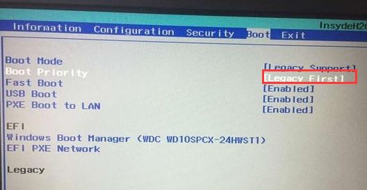 5、再把Boot Priority設(shè)置m.cncxm.com成Legacy First,按F10彈出窗口選擇yes回車;