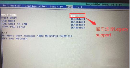 4、切換到Boot,把Boot Mode從UEFI改成Legacy Support;