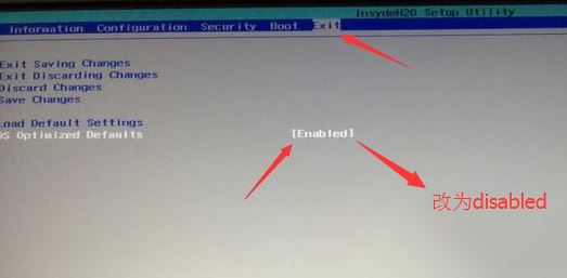 2、轉(zhuǎn)到Exit,把OS Optimized Defaults設(shè)置為Disabled或Other OS;