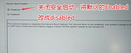 1、開機一直按F2進(jìn)入BIOS,按F2進(jìn)入BIOS界面,切換到secure BOOT頁面,選擇secure Boot Enable按回車改成Disabled,如圖所示;