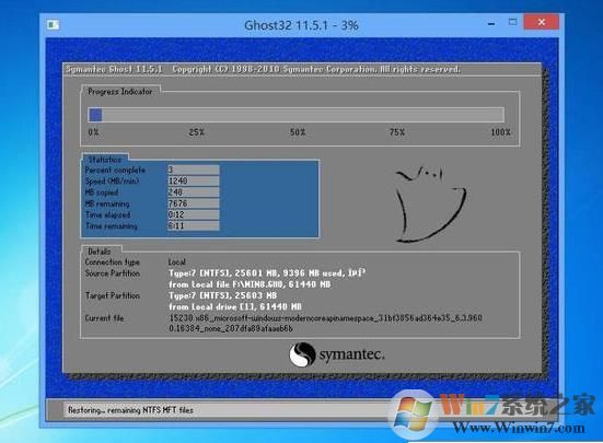 4、接下去會(huì)出現(xiàn)GHO恢復(fù)到電腦C盤的過程。