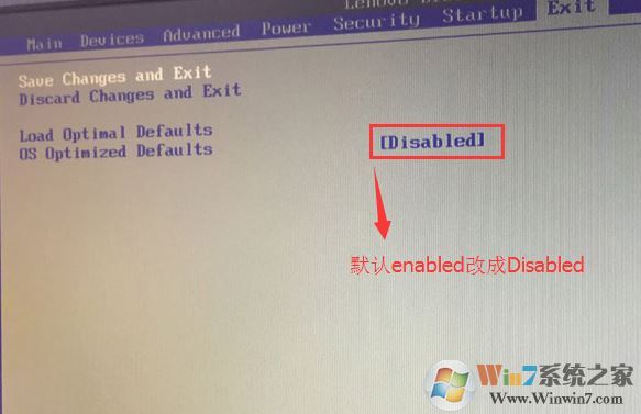 2、轉(zhuǎn)到Exit,把OS Optimized Defaults設(shè)置為Disabled;