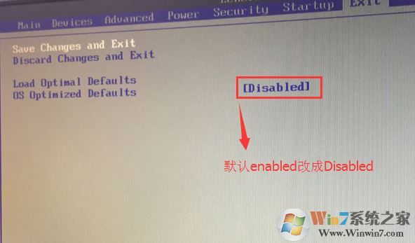 2、轉(zhuǎn)到Exit,把OS Optimized Defaults設(shè)置為Disabled;