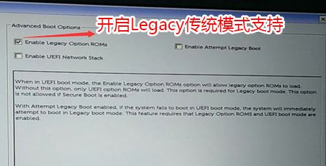 2、切換到Advanced Boot Options將右邊的Enable legacy option roms選項(xiàng)打勾,如下圖所示;