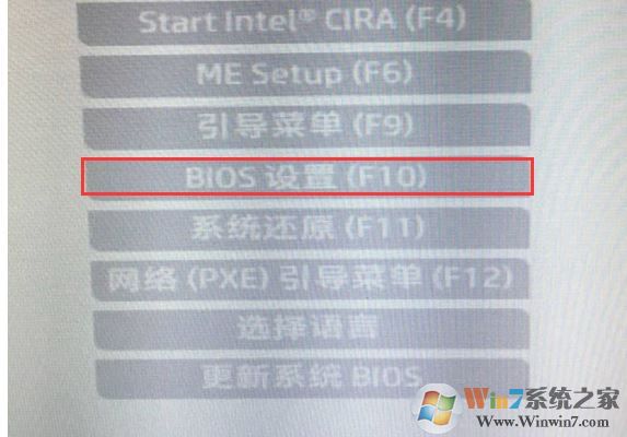 1、開(kāi)機(jī)一直按按ESC,出現(xiàn)以下界面后,再按F10進(jìn)入BIOS,如圖: