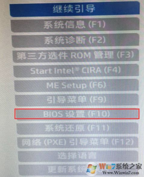 1、開機一直按按ESC,出現(xiàn)以下界面后,再按F10進入BIOS,如圖: