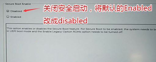 1、開機一直按F2進入BIOS,按F2進入BIOS界面,切換到secure BOOT頁面,選擇secure Boot Enable按回車改成Disabled,如圖: