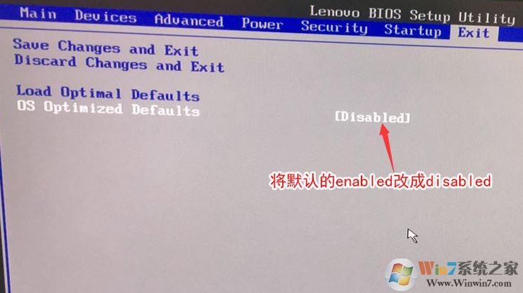 2、轉(zhuǎn)到Exit,把OS Optimized Defaults設(shè)置為Disabled;