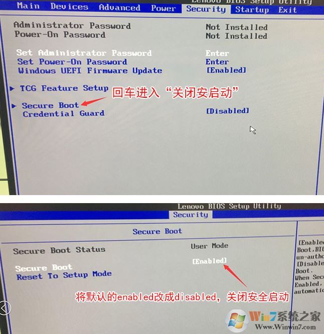 1、開機(jī)一直按F2或(FN+F2)進(jìn)入BIOS,按→方向鍵切換到Security,選擇Secure Boot回車設(shè)置成Disabled;