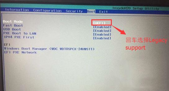 4、切換到Boot,把Boot Mode從UEFI改成Legacy Support;
