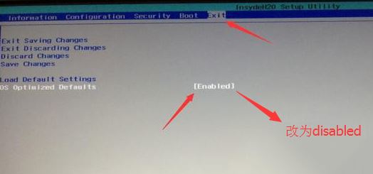 2、轉(zhuǎn)到Exit,把OS Optimized Defaults設(shè)置為Disabled或Other OS,如下圖所示;