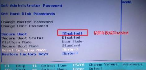 1、開機一直按F2或(FN+F2)進入BIOS,按→方向鍵切換到Security,選擇Secure Boot回車設置成Disabled,如下圖所示;
