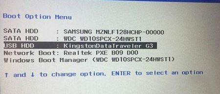 5、插入制作好的U盤啟動(dòng)盤,重啟按F12或FN+F12調(diào)出啟動(dòng)管理對話框,選擇USB HDD識(shí)別到U盤啟動(dòng)進(jìn)入PE,回車;