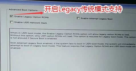 2、切換到Advanced Boot Options將右邊的Enable legacy option roms選項(xiàng)打勾,如下圖所示;