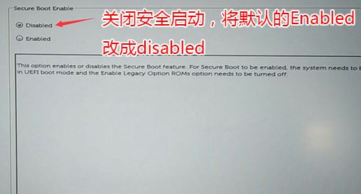 1、開機一直按F2進入BIOS,按F2進入BIOS界面,切換到secure BOOT頁面,選擇secure Boot Enable按回車改成Disabled,如圖: