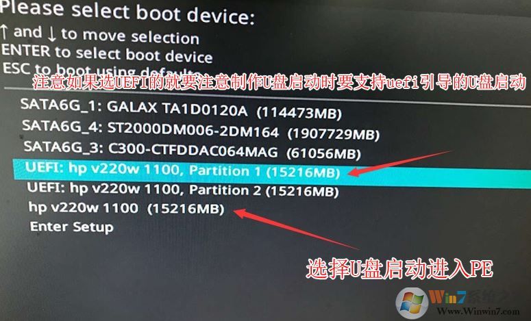 5、插入U(xiǎn)盤啟動(dòng)盤,重啟按ESC選擇識(shí)別到U盤啟動(dòng)項(xiàng),回車,如圖: