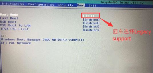 4、切換到Boot,把Boot Mode從UEFI改成Legacy Support;