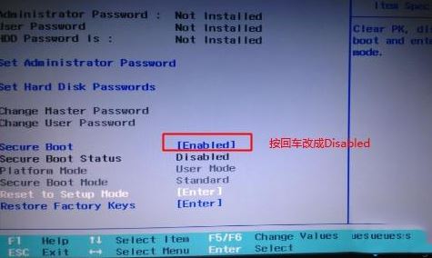 1、開機一直按F2或(FN+F2)進入BIOS,按→方向鍵切換到Security,選擇Secure Boot回車設(shè)置成Disabled,如下圖所示;