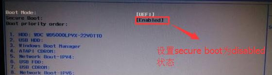 返回BOOT選項,將Secure BOOT默認enabled為disabled,關閉安全啟動