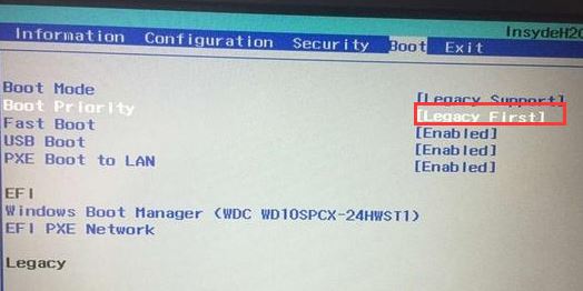 5、再把Boot Priority設(shè)置成Legacy First,按F10彈出窗口選擇yes回車;
