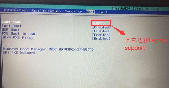 4、切換到Boot,把Boot Mode從UEFI改成Legacy Support;