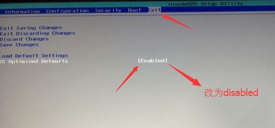 2、轉(zhuǎn)到Exit,把OS Optimized Defaults設(shè)置為Disabled或Other OS,如下圖所示;