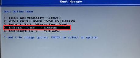 4、插入U盤啟動盤,重啟時不停的按下f12,打開Boot Manager,選擇USB HDD回車從U盤啟動,如圖所示;