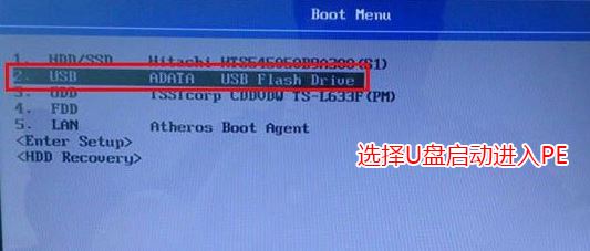 4、保存后,插入制作好的U盤啟動盤,重啟時不停的按下f12,打開Boot menu,選擇USB HDD回車從U盤啟動,記得是uefi開頭的,如下圖所示;