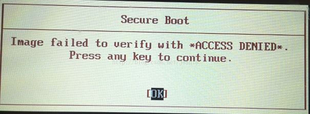 1、開(kāi)我們平常方法直接安裝win7后出現(xiàn)無(wú)法引導(dǎo)的問(wèn)題,開(kāi)機(jī)出現(xiàn)"Image failed to verify with access denied",無(wú)法正常引導(dǎo)怎么辦,如下圖所示;