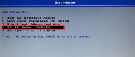 4、保存后,插入制作好的U盤(pán)啟動(dòng)盤(pán),重啟時(shí)不停的按下f12,打開(kāi)Boot Manager,選擇USB HDD回車(chē)從U盤(pán)啟動(dòng),記得是uefi開(kāi)頭的,如下圖所示;
