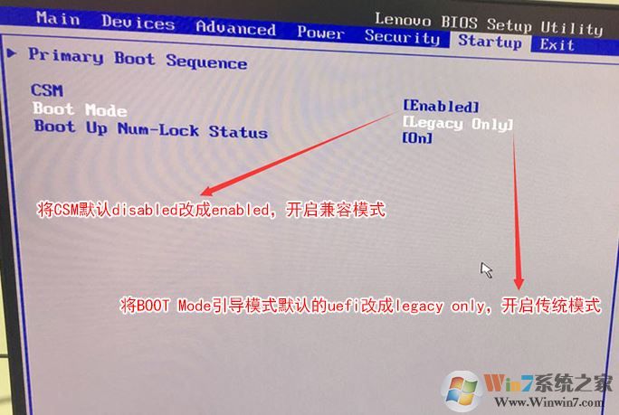 3、切換到Boot,把Boot Mode從UEFI改成Legacy only引導(dǎo)模式,再把csm默認(rèn)disabled改成enabled,開啟兼容模式,如下圖所示;