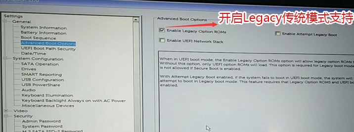 3、切換到Advanced Boot Options將右邊的Enable legacy option roms選項(xiàng)打勾,如下圖所示;