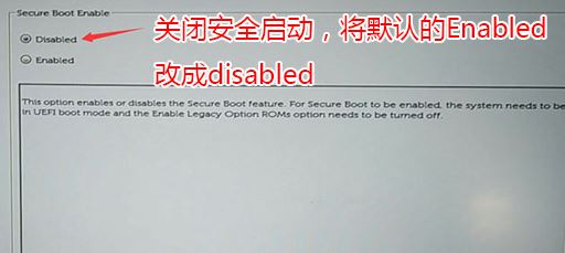 1、開機(jī)一直按F2進(jìn)入BIOS,按F2進(jìn)入BIOS界面,切換到secure BOOT頁(yè)面,選擇secure Boot Enable按回車改成Disabled,如圖: