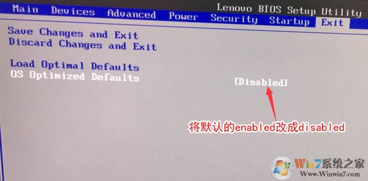 2、轉(zhuǎn)到Exit,把OS Optimized Defaults設(shè)置為Disabled,如圖所示:
