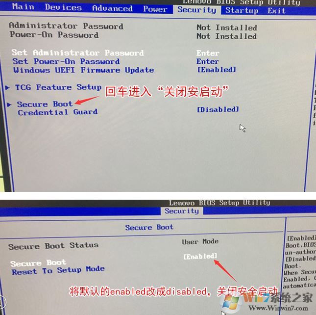 1、開機(jī)一直按F2或(FN+F2)進(jìn)入BIOS,按→方向鍵切換到Security,選擇Secure Boot回車設(shè)置成Disabled;