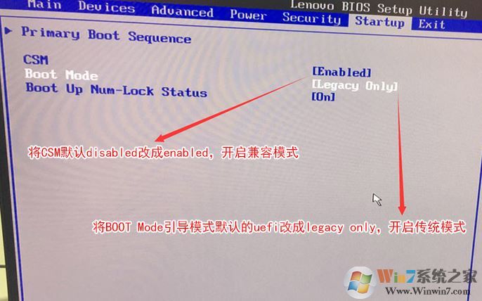 3、切換到Boot,把Boot Mode從UEFI改成Legacy only引導模式,再把csm默認disabled改成enabled,開啟兼容模式,如下圖所示;