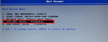 5、插入U盤啟動盤,重啟時不停的按下f12,打開Boot Manager,選擇USB HDD回車從U盤啟動,如圖所示;