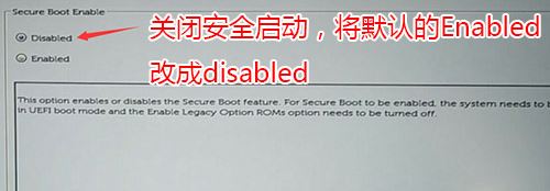 1、開機一直按F2進入BIOS,按F2進入BIOS界面,切換到secure BOOT頁面,選擇secure Boot Enable按回車改成Disabled,如圖所示;